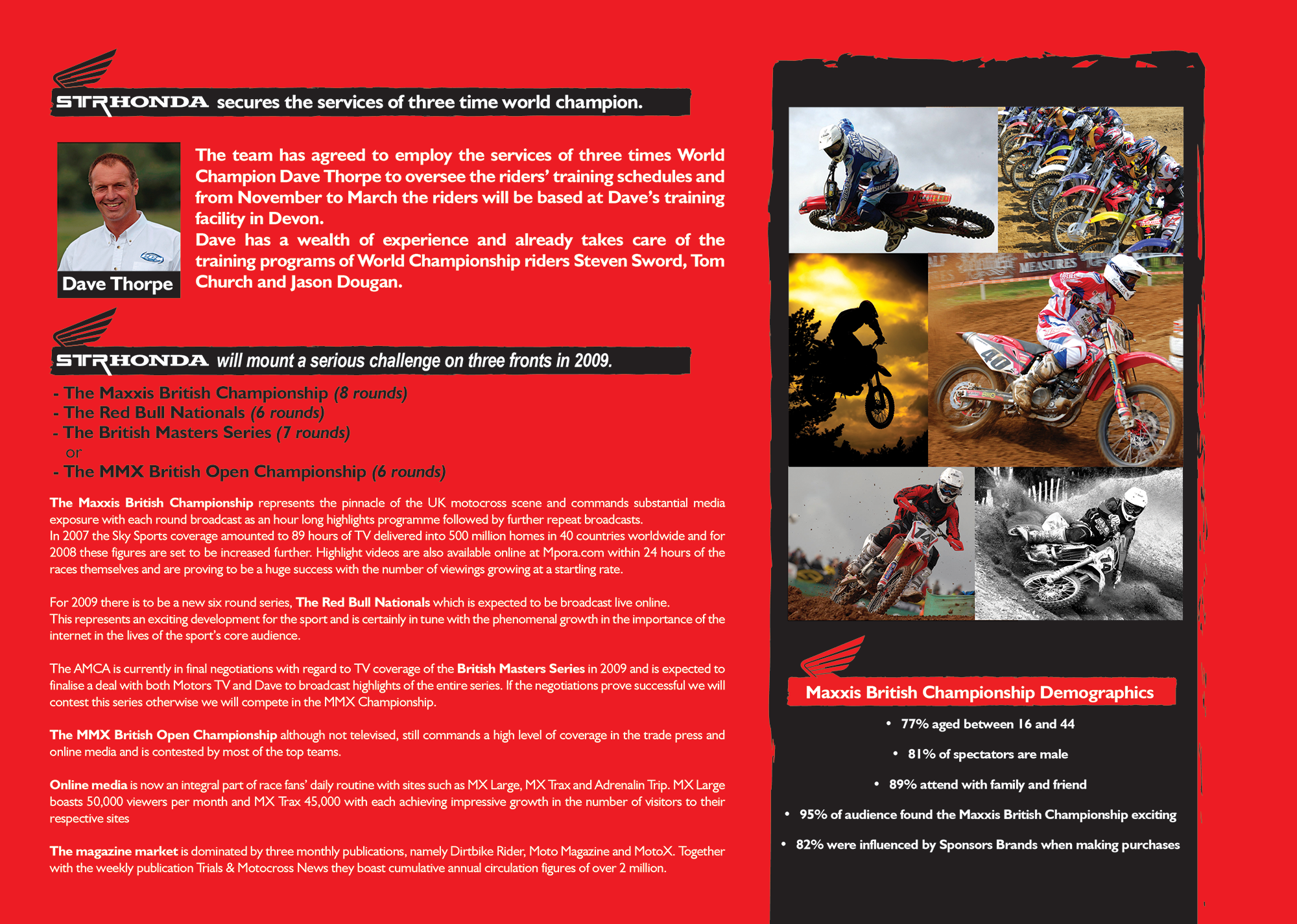 We focused on creating a well-structured layout that combined engaging visuals with clear, concise content. The brochure features high-quality imagery of the team in action, alongside sections that break down sponsorship tiers and their benefits. Each page was designed to balance professional appeal with the energy and excitement of motocross racing.