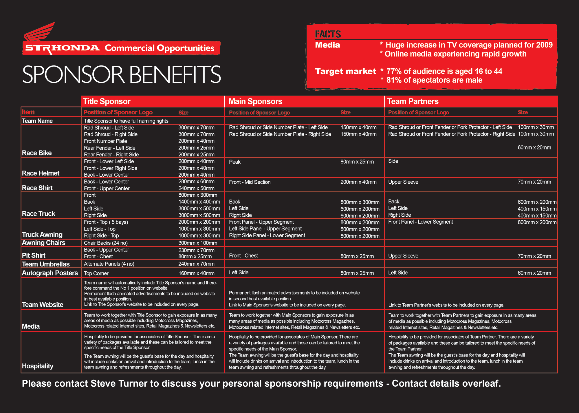 The brochure needed to highlight STR’s vision and provide detailed information about the various sponsorship packages available. It was important to ensure the opportunities were easy to understand while covering all the essential details sponsors would need to make an informed decision.
